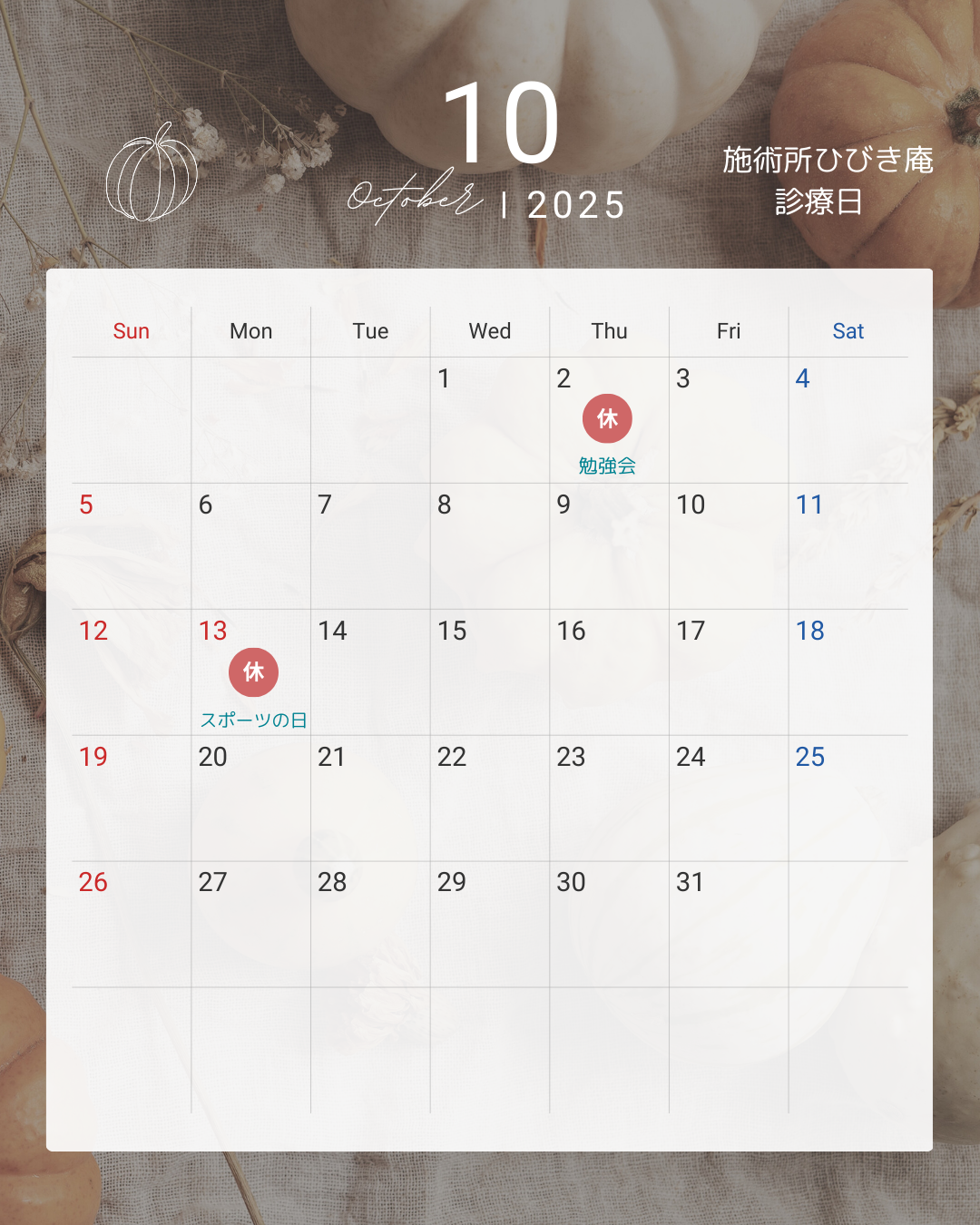 ひびき庵から10月の診療日のご案内をさせて頂きます💁🏻♀️💁🏻💁🏻♂️